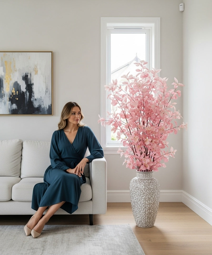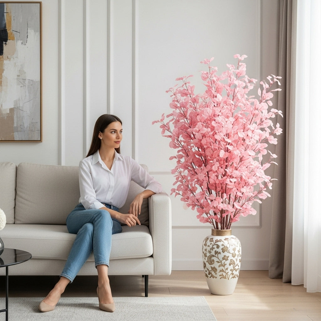 Elegant Artificial Cherry Blossom Tree – Tall White Vase Edition